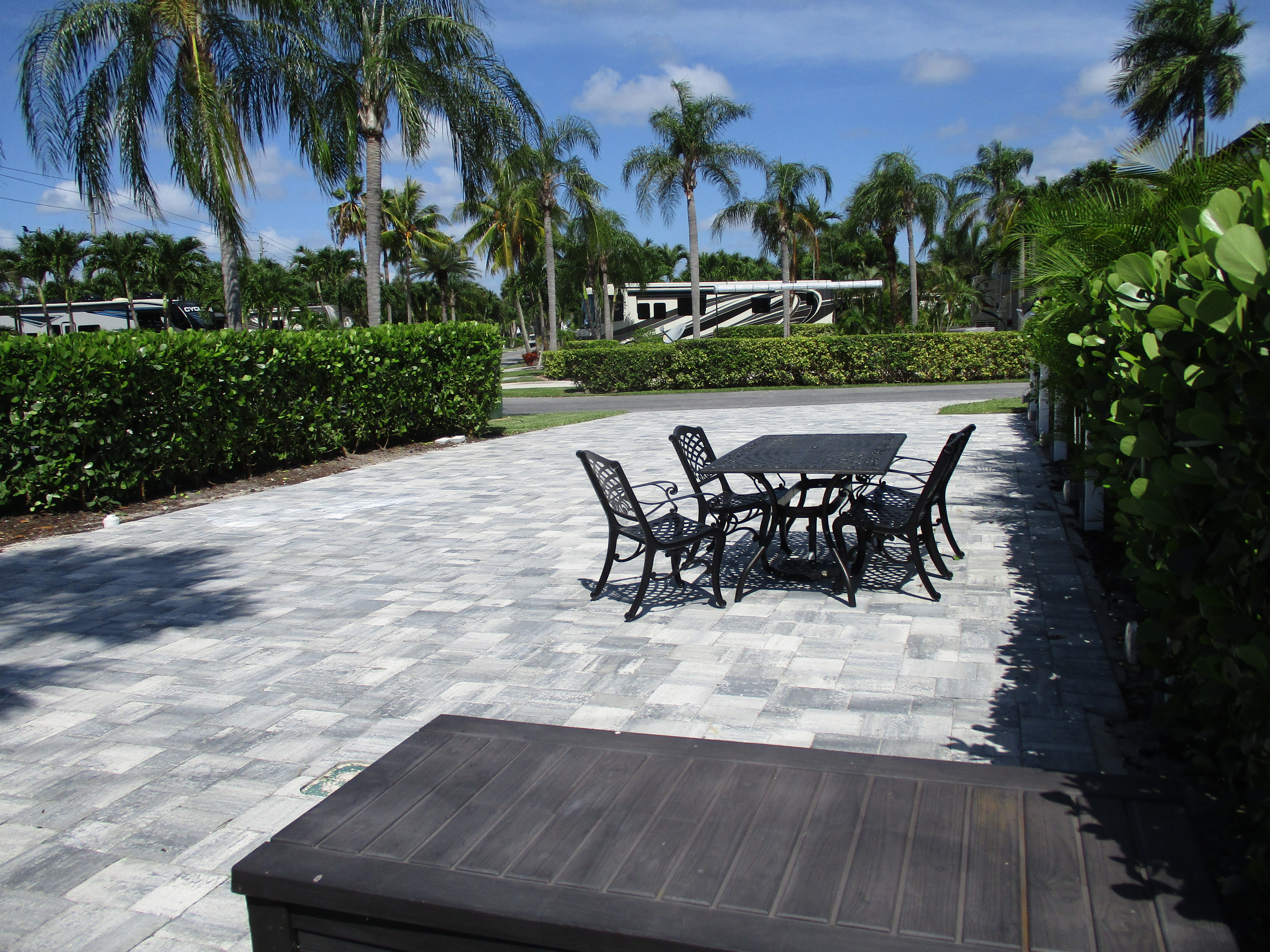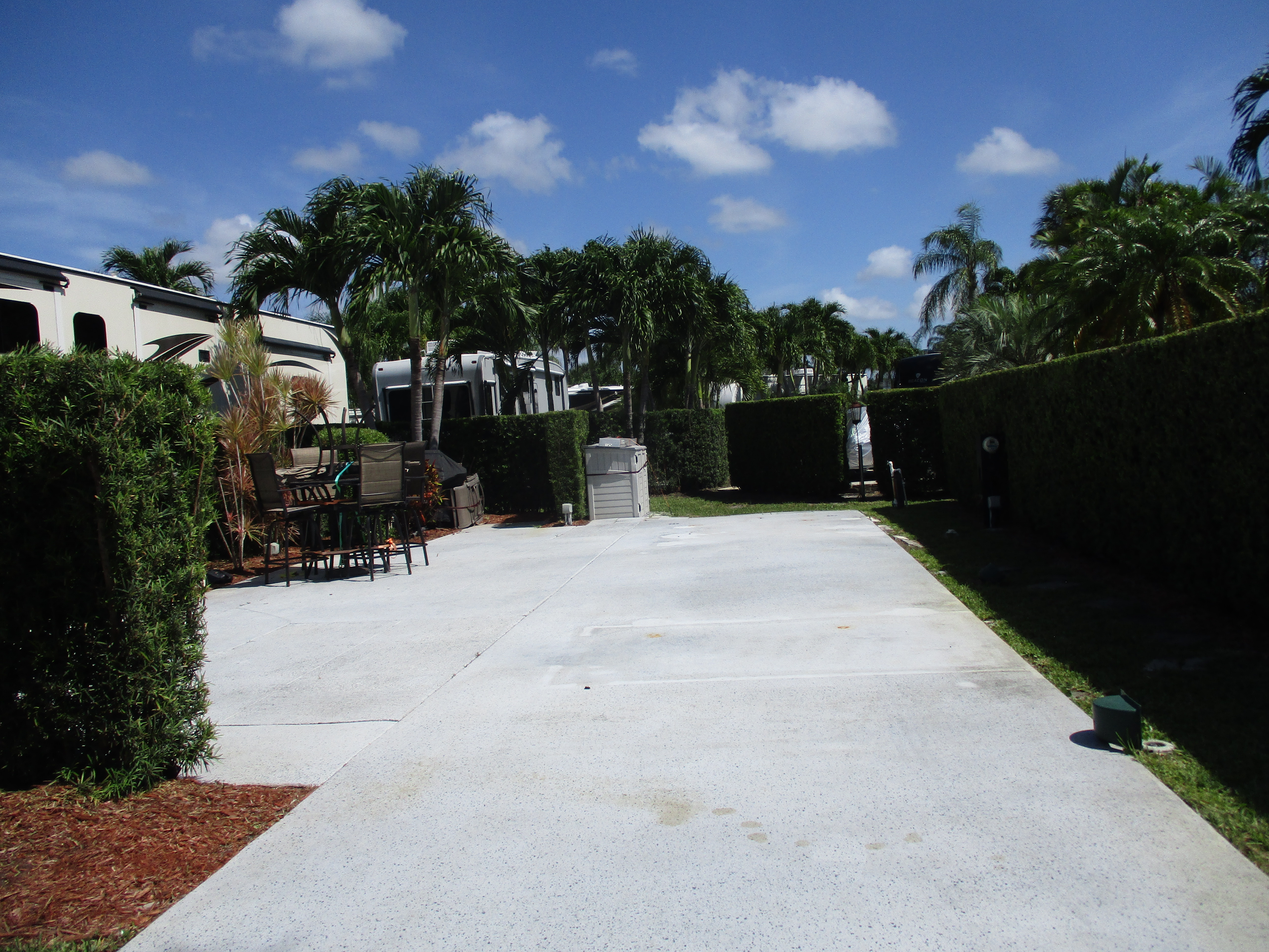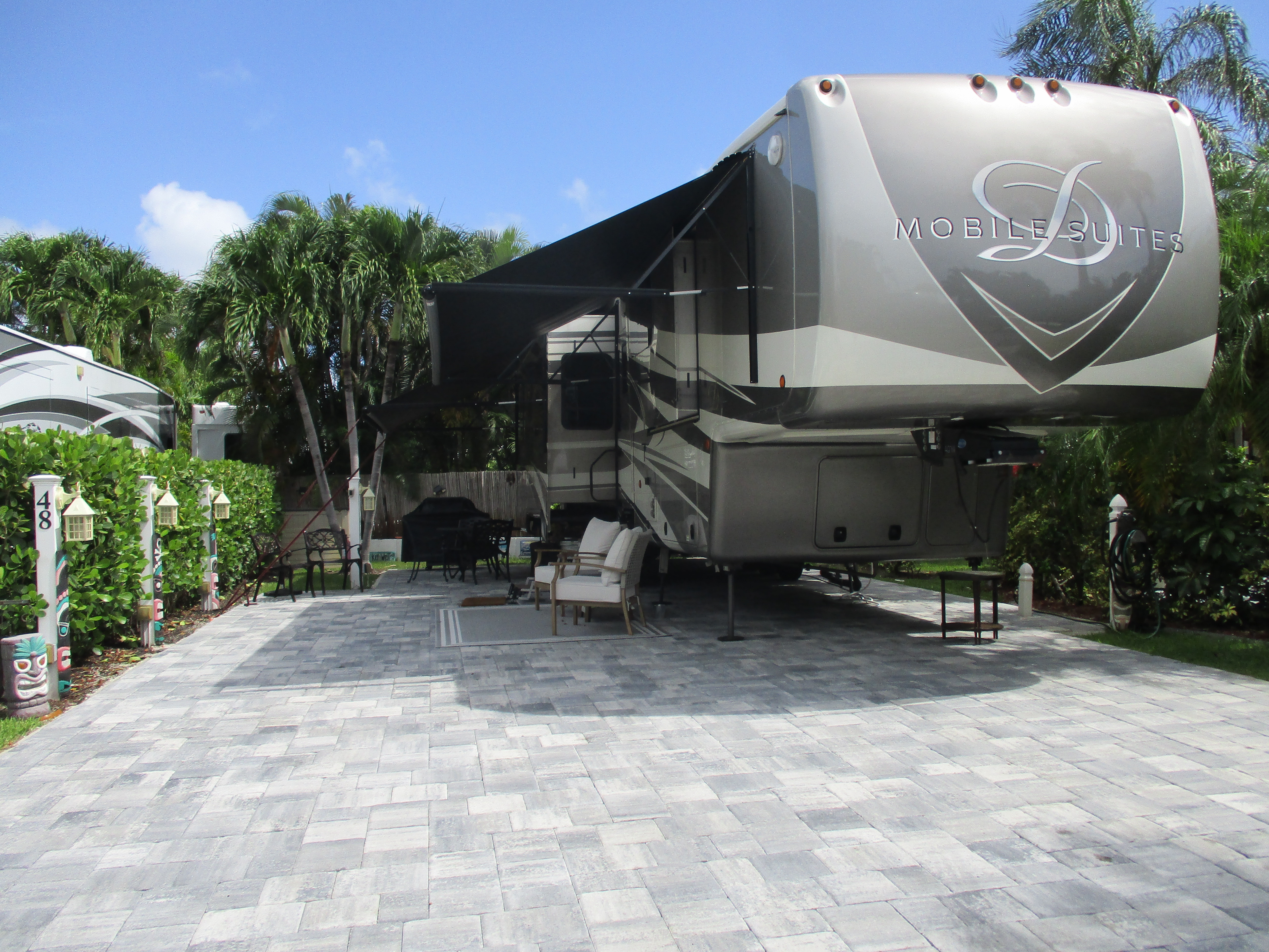 50 amp electric, water and sewer hook-ups, cable TV, concrete pads, picnic table, daily garbage pick-up, lush landscaping, two pools and two spas, tennis, shuffleboard, pickleball and petanque courts, children’s play area and three renovated bathhouses with laundry facilities.