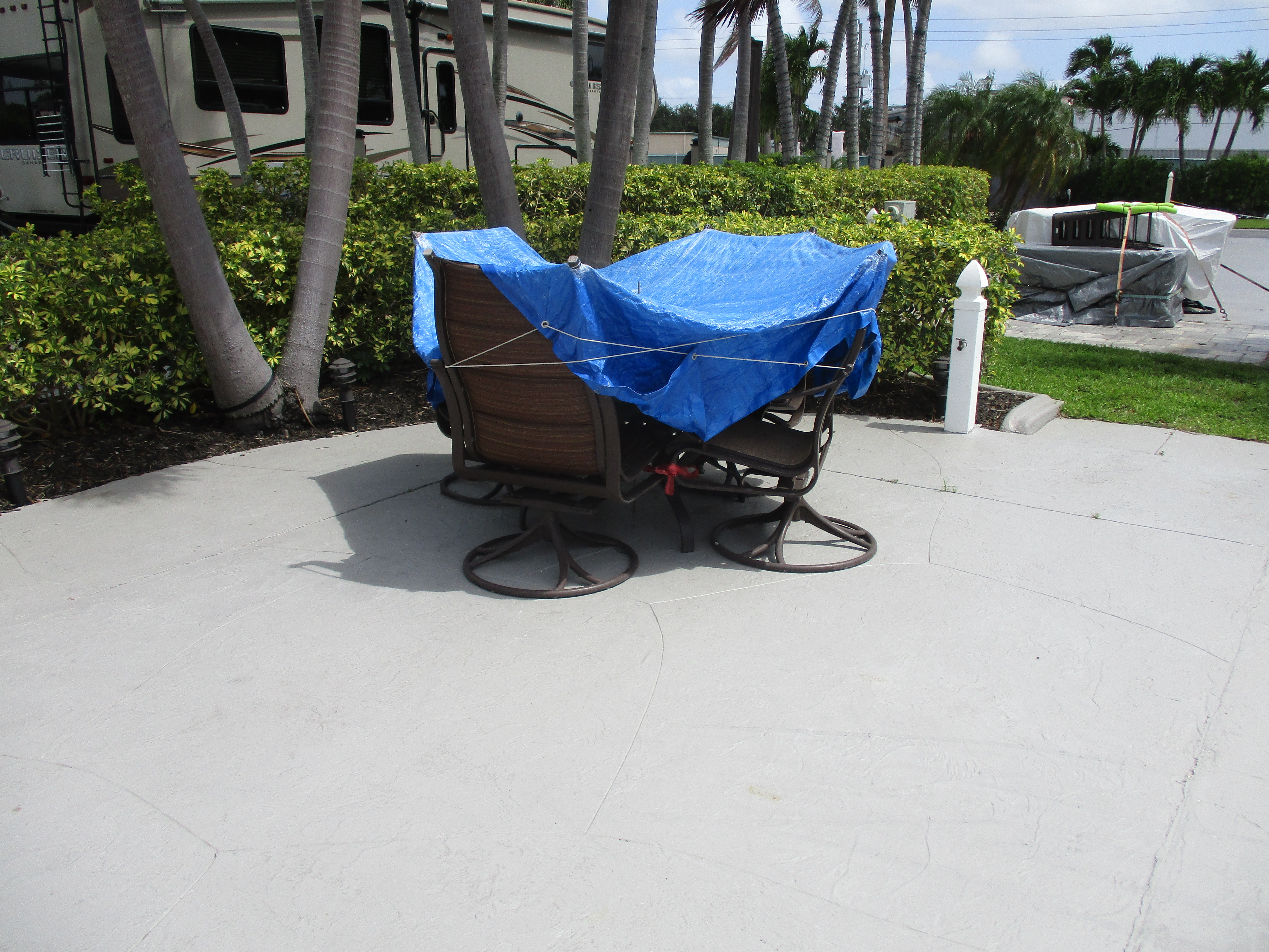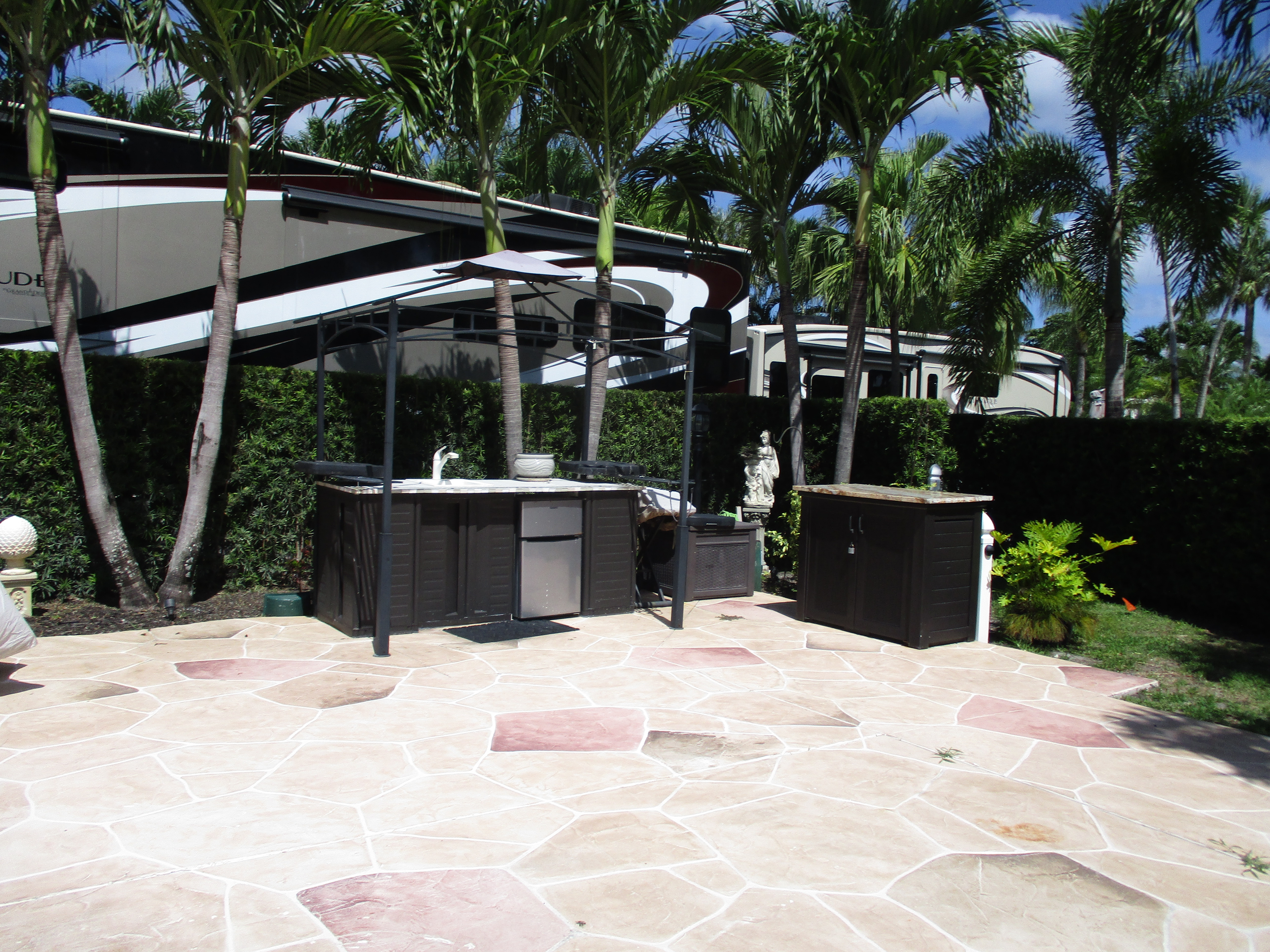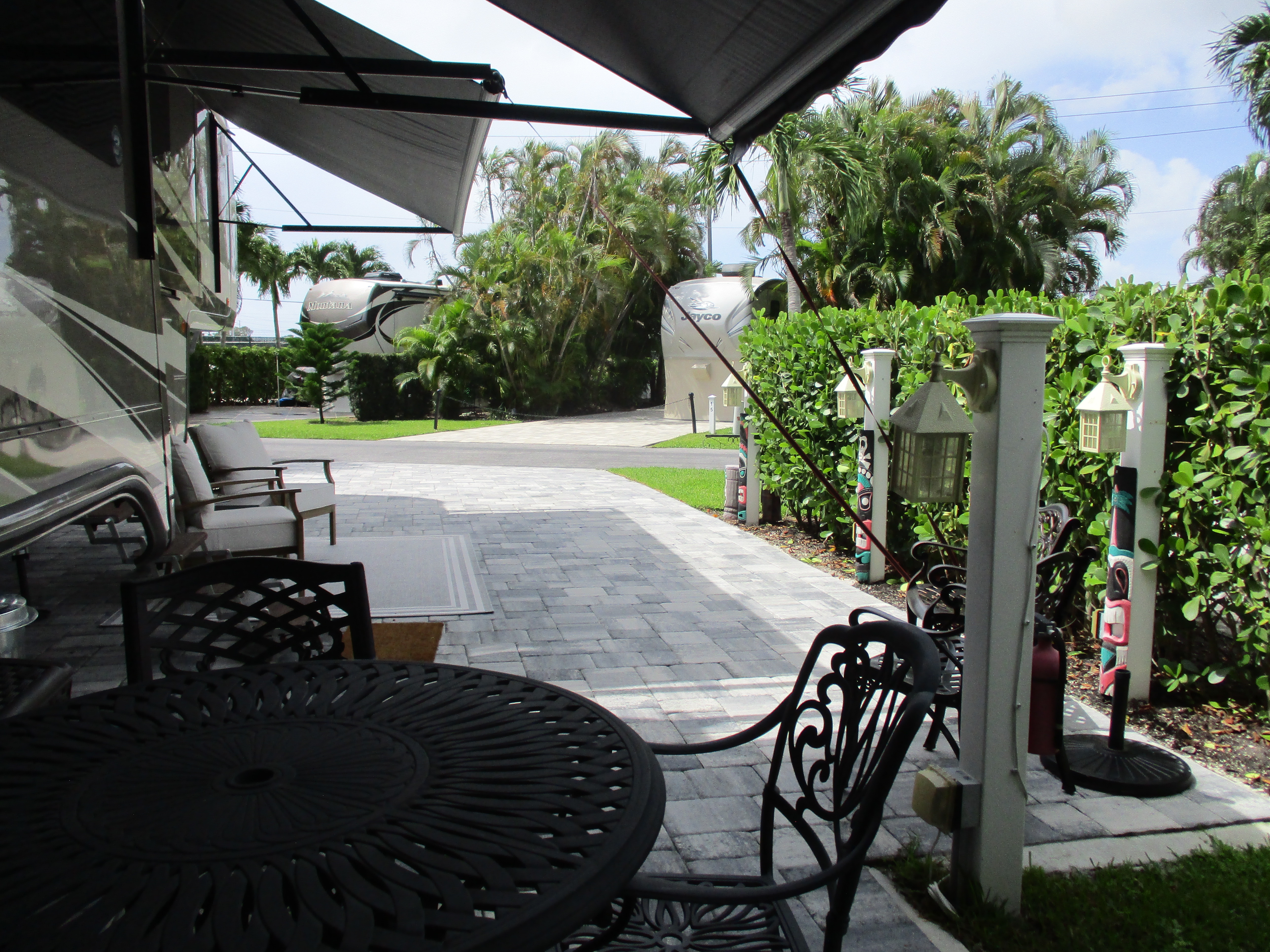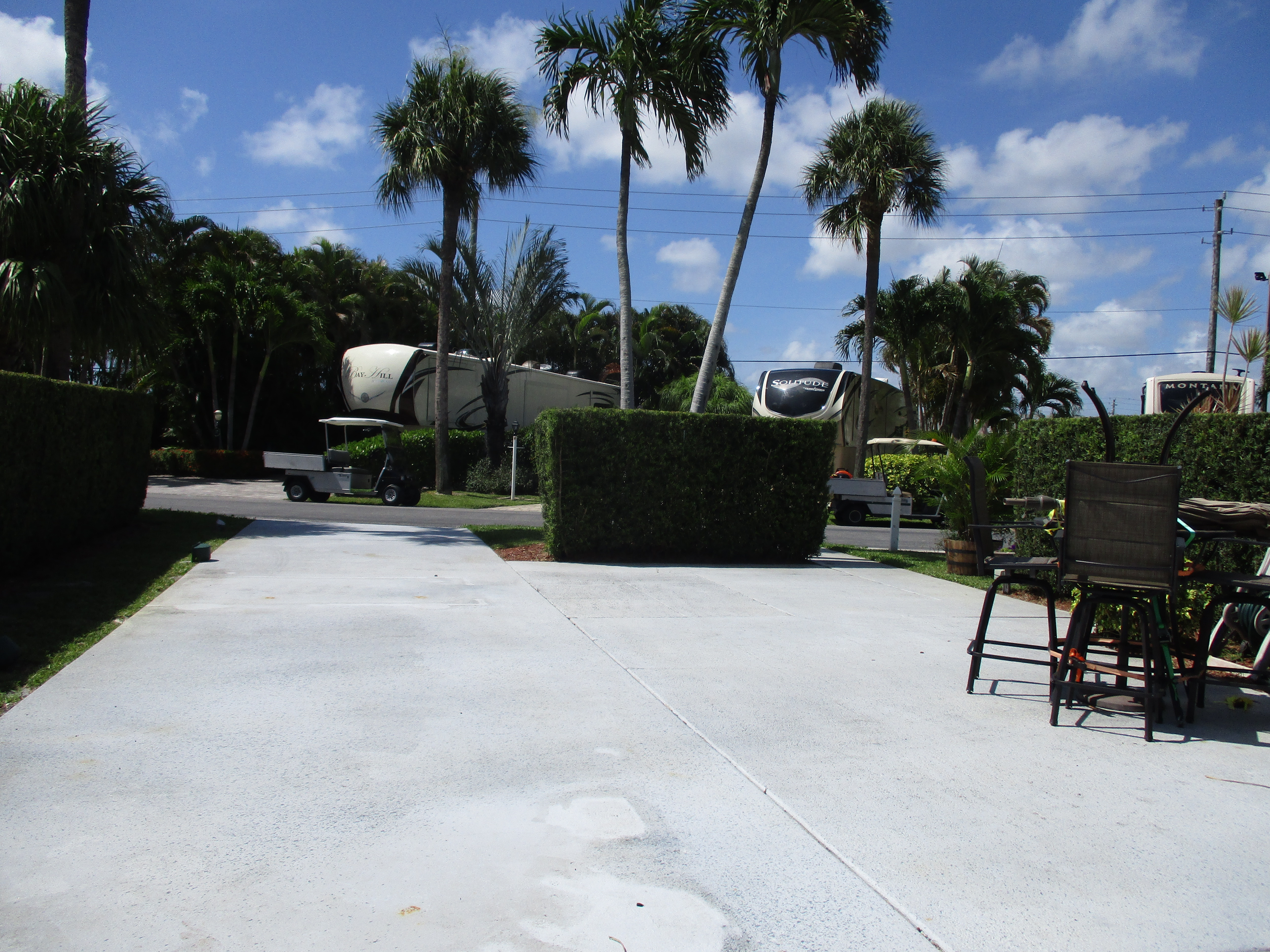 50 amp electric, water and sewer hook-ups, cable TV, concrete pads, picnic table, daily garbage pick-up, lush landscaping, two pools and two spas, tennis, shuffleboard, pickleball and petanque courts, children’s play area and three renovated bathhouses with laundry facilities.